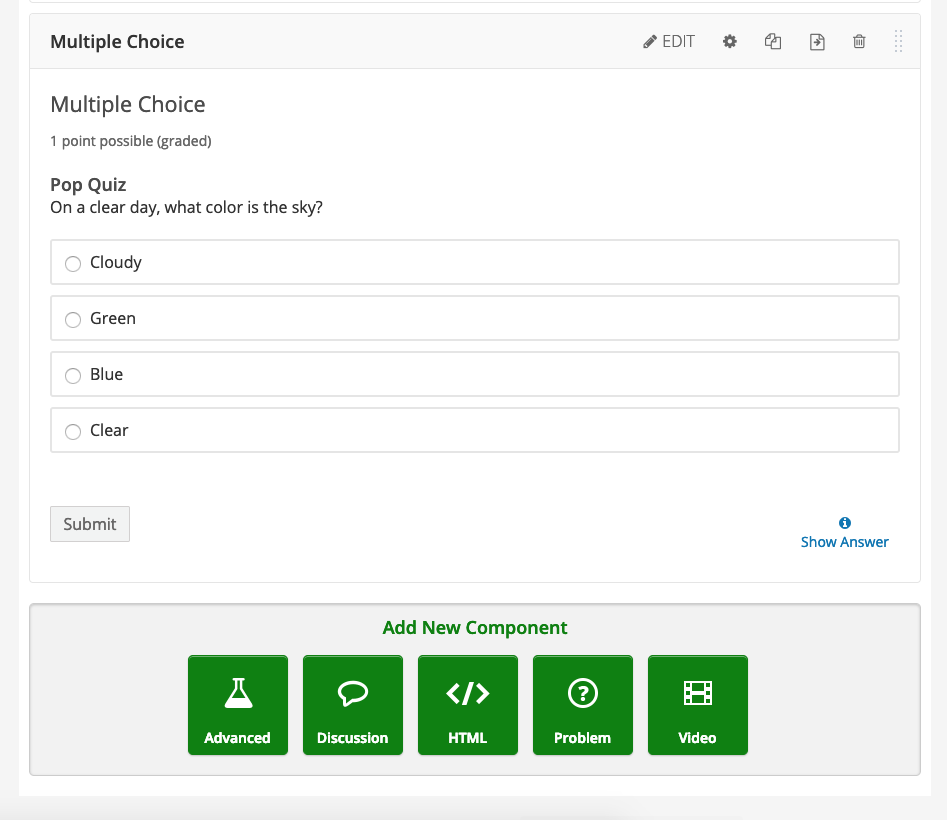 Studio פועל כאפליקציות אתר המוכרות לך כבר, אך עדיין מבין שהינך בונה תכנית לימודים. פרסום מיידי באתר בזמן שאתה בוחר, שחרור הדרגתי של פרקים כאשר זה הגיוני. יחד עם מחברים נוספים, ניתן לבנות קורס שלם.